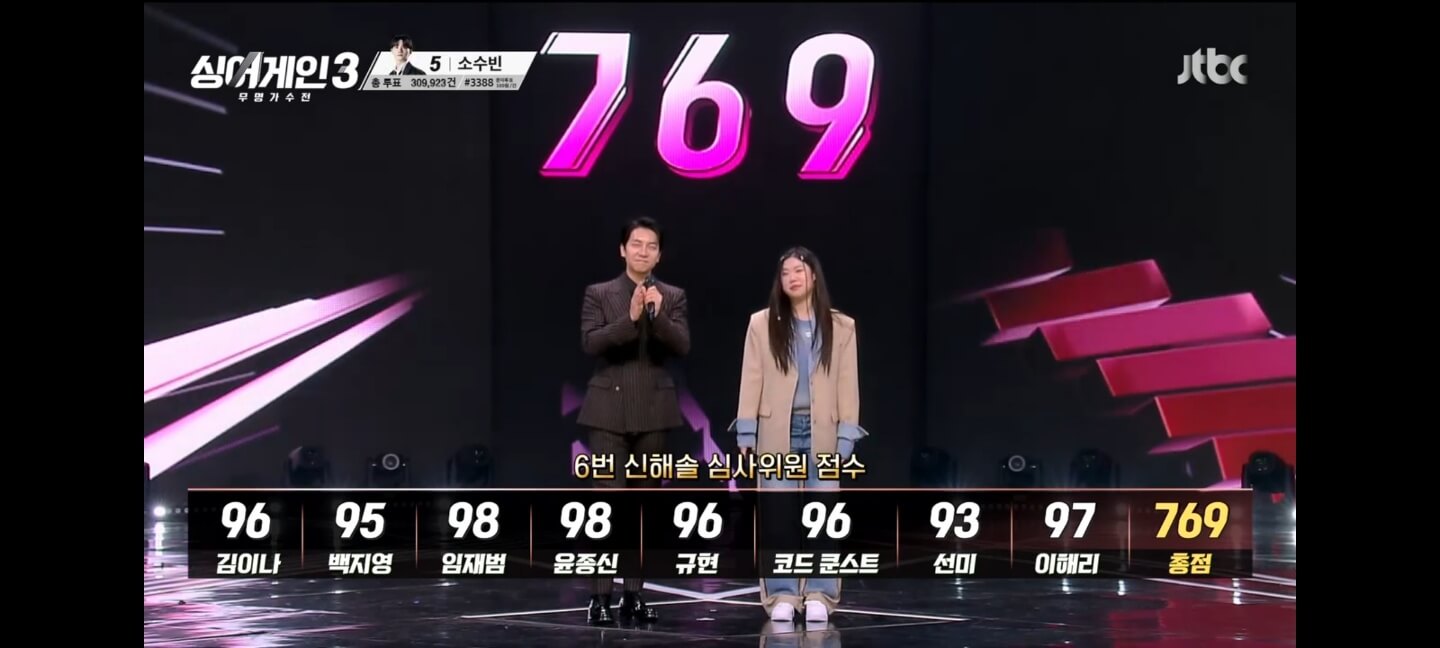 타고난 스킬과 목소리로 당찬 무대를 보여준 신해솔은 역시 높은 점수인 769점을 받았으나, 4위가 되어 아쉽게 탑3에 들지는 못했습니다.