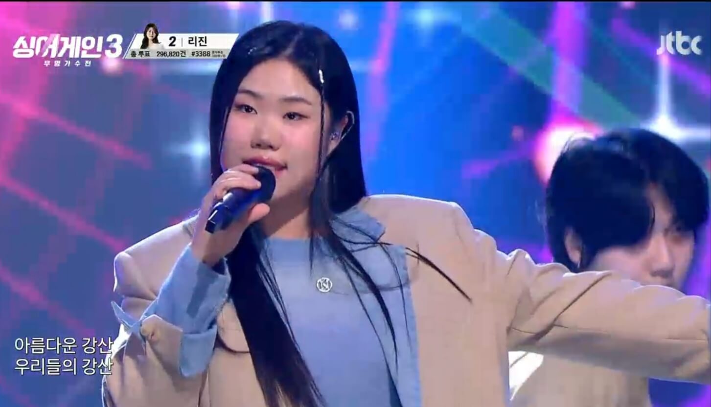 특유의 감성과 분위기로 무대를 펼친 리진은 가장 낮은 점수인 745점을 받았으나 1차 점수와 생방송 투표 합산 후 5등으로 마무리 하였습니다.