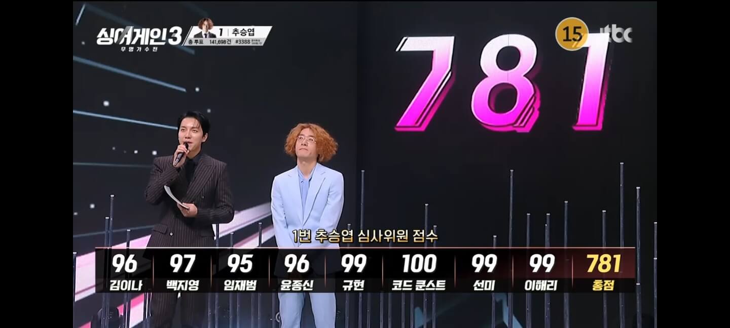 간절한 열창을 보여준 추승엽은 781점이라는 높은 심사위원 점수를 받으며 마지막까지 선전하였으며, 파이널 1차 점수와 생방송 투표 합산 결과 7위에 랭크되었습니다.